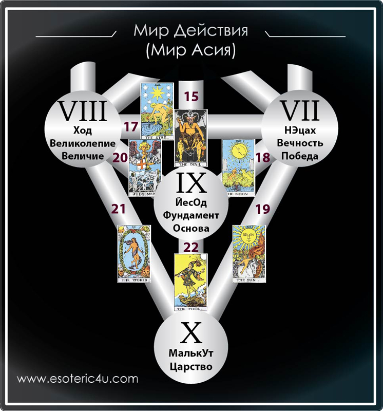 [b]Для наработки Фиксации ТС в каждой из Сфирот (в каждом мире)[/b], мы работаем с Арканами Таро, которые описывают нам Качества Сознания, которые необходимо наработать для фиксации в Сфире.[/quote]