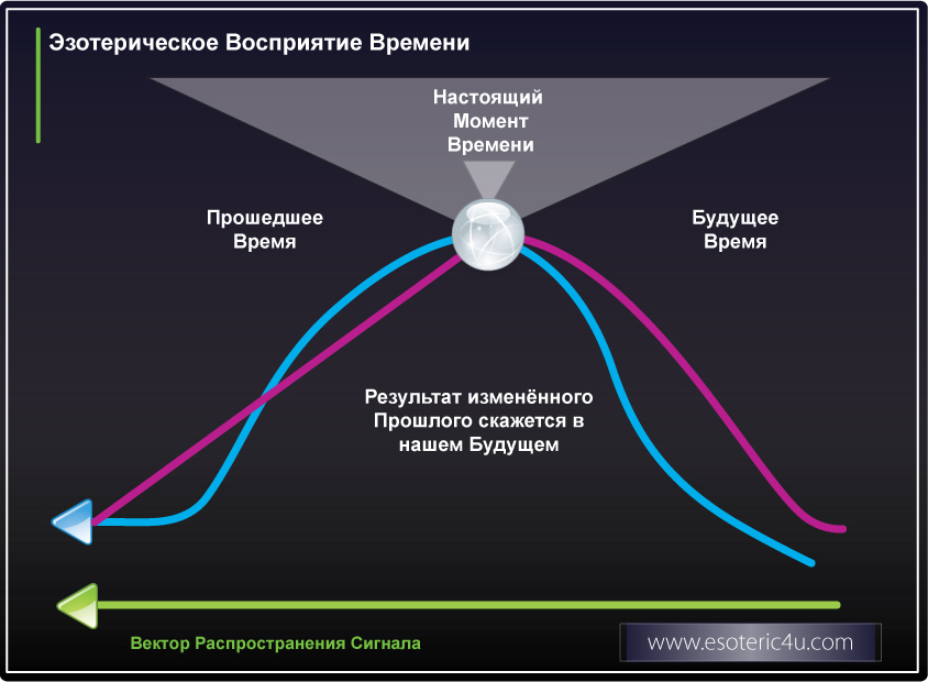 Когда мы говорим – вернуться в-прошлое, то подразумеваем, сонастроиться с частью сигнала о мире, левее точки «Настоящего Времени» (см. Рисунок).