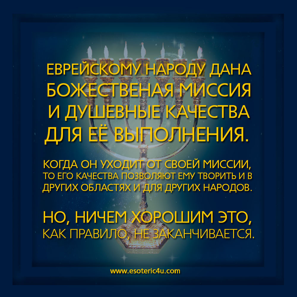 Еврейскому народу дана Божественная миссия и Душевные качества для ее исполнения...