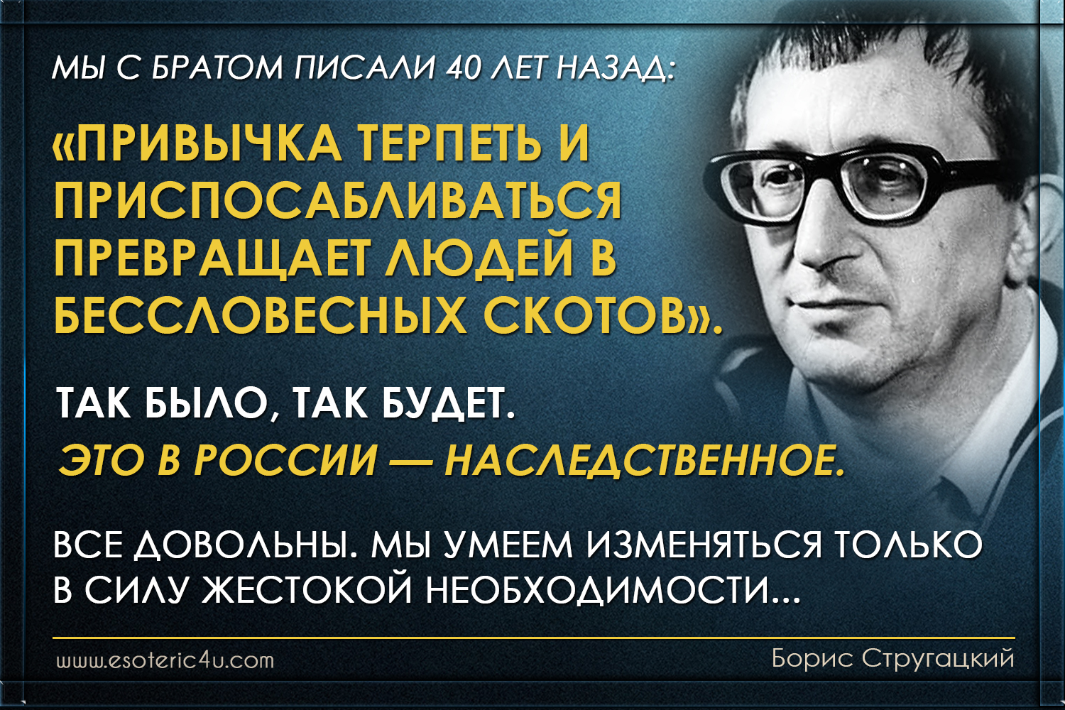 Борис Стругацкий: «Привычка терпеть и приспосабливаться превращает людей в бессловесных скотов»