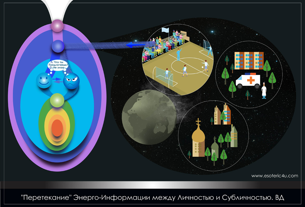 Это происходит тогда, когда Личностное Сознание "Я" пробуждается и начинает обрабатывать поступающую на него Энергоинформацию,- у человека оказывается два активных Сознания – Субличнось и Личность,- оба в Теле Вишудхи. Между ними начинает перетекать энергоинформация, которая интерпретируется нами в виде Диалога,- то, что принято называть Внутренним Диалогом. При этом, мы хотим подчеркнуть, что это именно диалог, а не просто внутренний монолог ума, который постоянно ведет субличность. Наличие пробуждающего Сознания характерно появлением "Наблюдателя", некоего второго "Я", которое наблюдает за всем происходящим,- например, осознаёт, что сейчас "мы злимся", а "сейчас мы не знаем как поступить" и тому подобное.По мере Пробуждения, Сознание Личности начинает брать управление на себя,- оно не только Осознаёт, что "сейчас мы злимся",- но и может в любой момент прекратить "злиться" и начать делать что-то другое.Таким образом, человек обретает контроль над своим Поведением и своей Жизнью...[/quote]