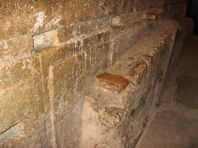 Иерусалим - Храмовая Гора, тоннель под Западной стеной. Детали мегалитических блоков..., окаменелости в некоторых пустых пазах мегалитов