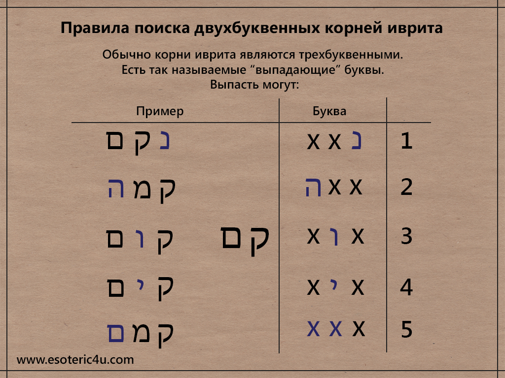 Правило выпадающих букв в корнях иврита