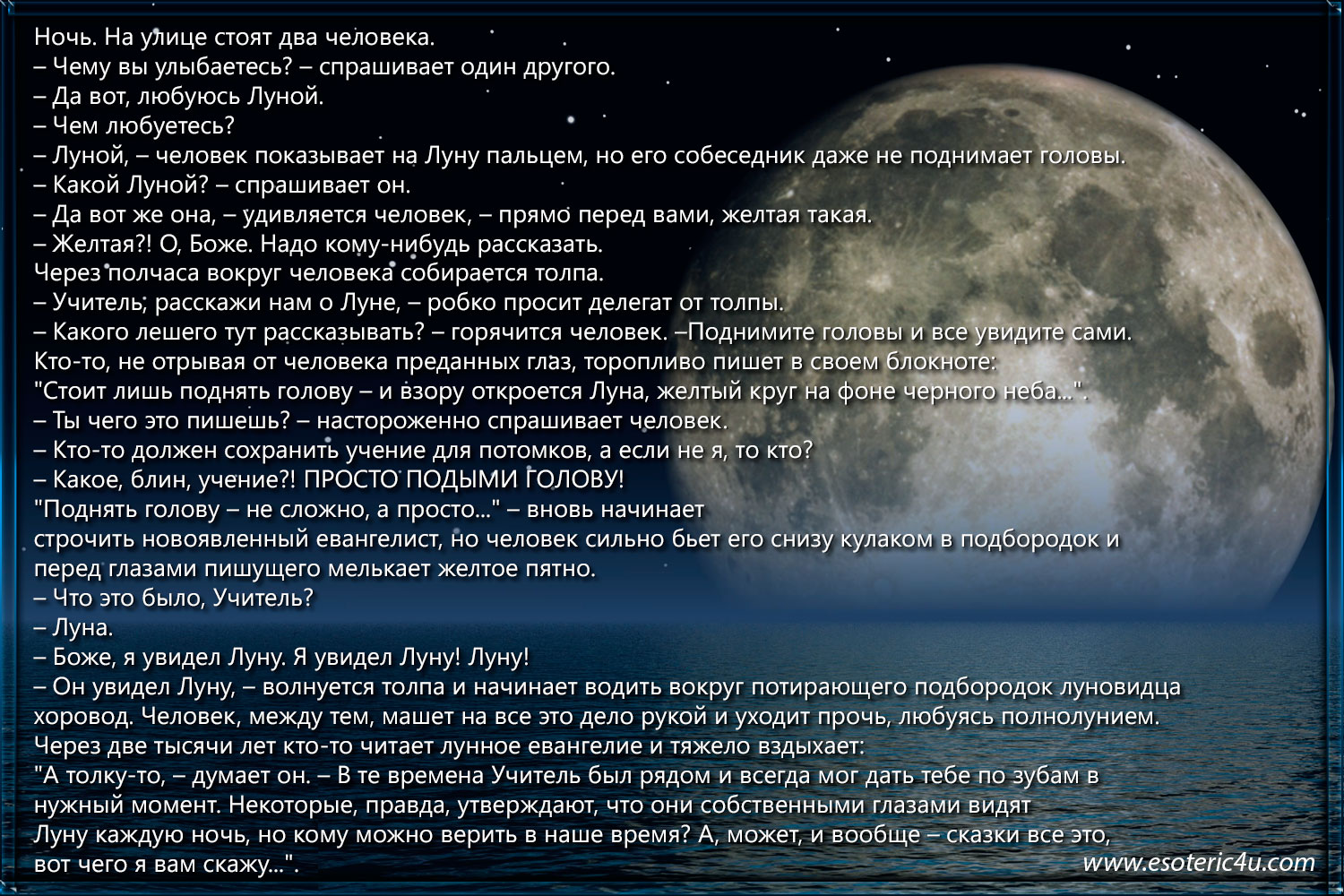 Мастер только указывает на луну ... выбор человека: смотреть на палец или поднять голову....
