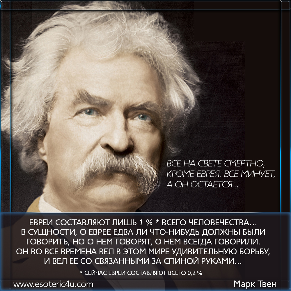 Если статистика права, евреи составляют всего один процент человечества (ремарка: на сегодняшний день - 2014 год, евреи составляют уже всего 0,2 %). Это наводит на мысль о неясном туманном клубке звездной пыли, затерянном в сиянии Млечного Пути. Еврей вряд ли может надлежащим образом обязать услышать его, но его слышали, он всегда был услышан. Он так же известен на этой планете, как и любой другой человек, и его коммерческое значение непомерно, исходя из небольшой его численности. Его вклады в мировой список великих имён в литературе, прикладной и фундаментальной науках, искусстве, музыке, финансах, медицине также далеко не пропорциональны по отношению к численности евреев.