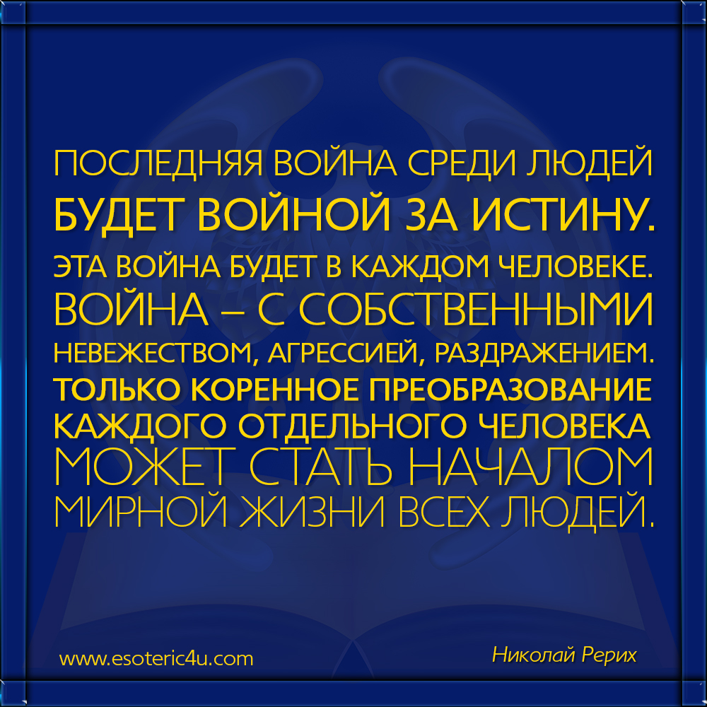 Последняя война человечества, будет войной за Истину..... Н. Рерих