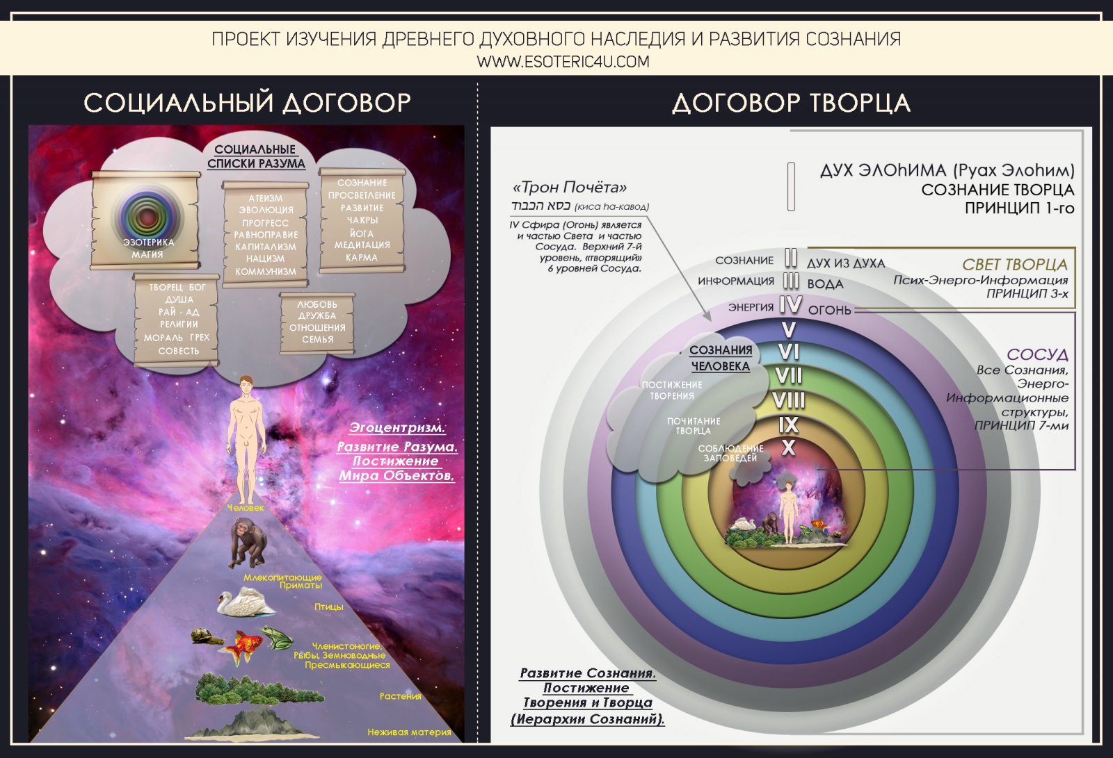 Рис. 1: Социальный Договор и Договор Творца - разные миры Человека: разная мотивация, разные цели, разные возможности...